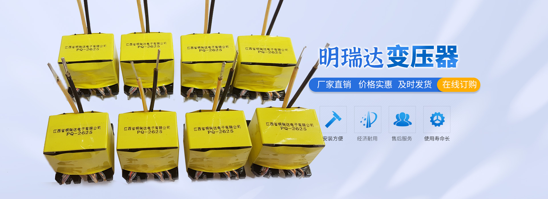 江西省明瑞達電子有限公司座落于江西省贛州市石城縣,是一家研發、生產、銷售各種變壓器廠商。生產銷售、技術服務、產品研發為一體的綜合性企業,主要生產、銷售產品:變壓器(EE型、ER型、PQ型、RM型、POT型、UU型、DR型等產品),主要適用于:開關電源、適配器、機頂盒、液晶電視、空調、冰箱、LED、電腦、音箱、DVD、飲水機、電磁爐等各種家用電器及航空、醫療事業。